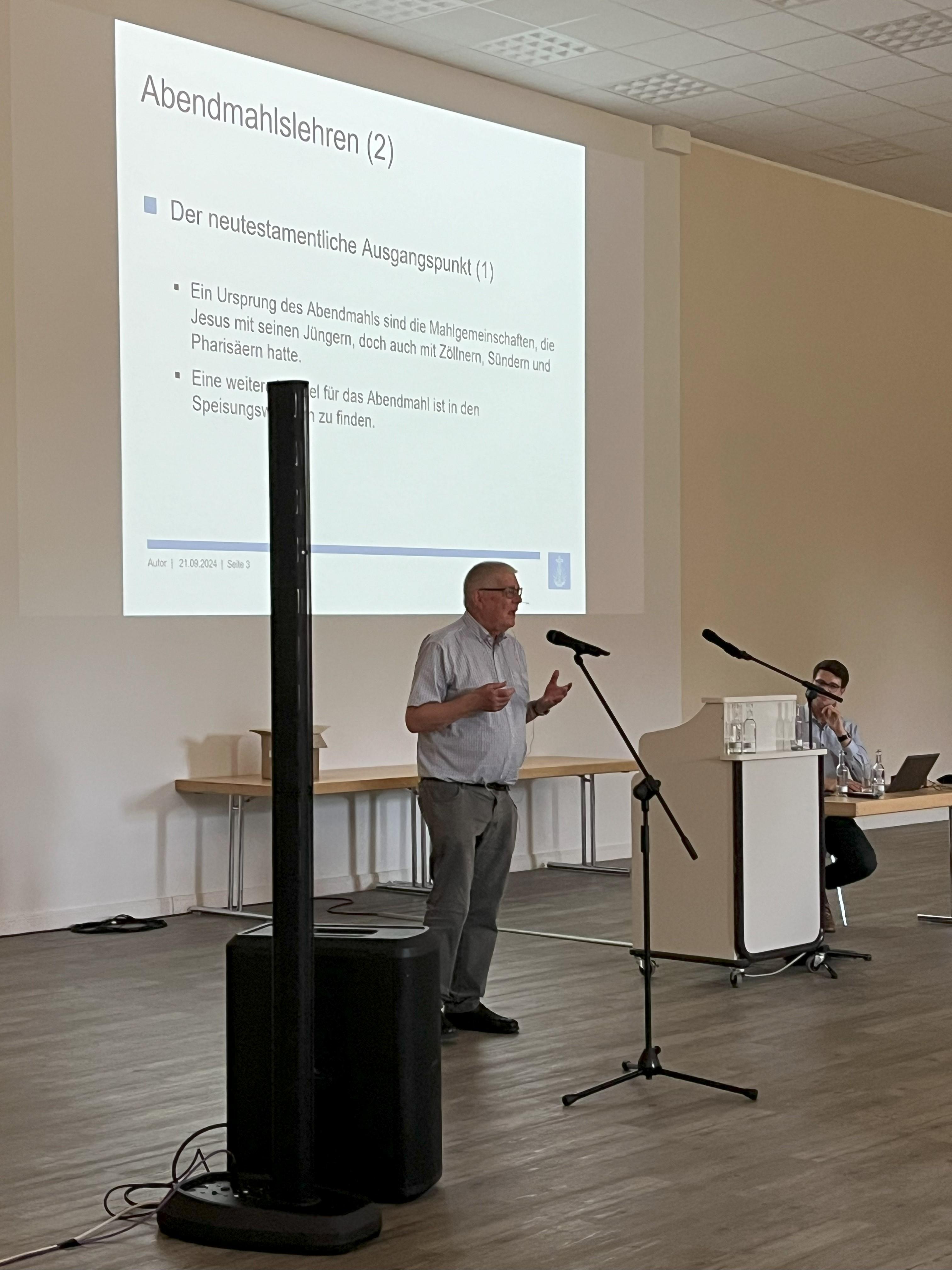 Als dritte Möglichkeit stand ein „alter Bekannter“ auf dem Programm: Dr. Reinhard Kiefer, theologischer Berater des Stammapostels und Co-Autor des Katechismus und der Leitgedanken, referierte gewohnt unterhaltsam und fundiert zum Heiligen Abendmahl. Zu anderen Zeiten des Nachmittags äußerte er zentrale Gedanken zur Sündenvergebung und schließlich zur Bedeutung des neuzeitlichen Apostelamts.